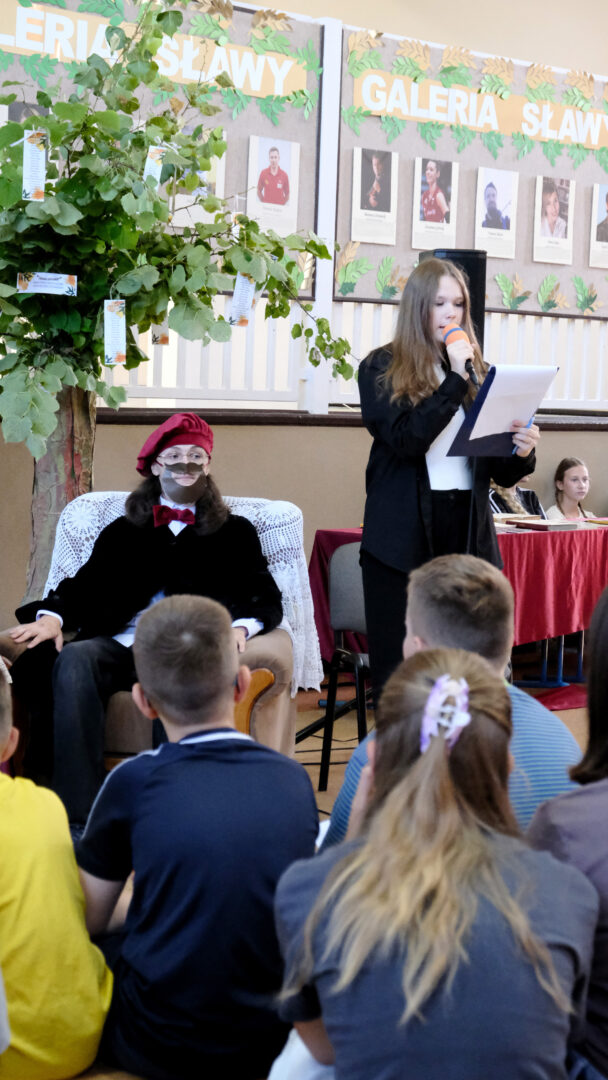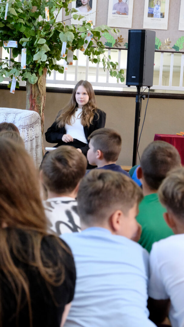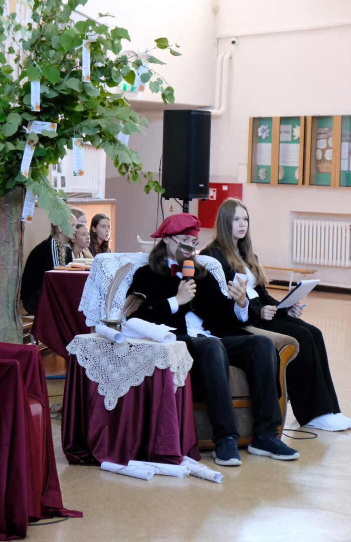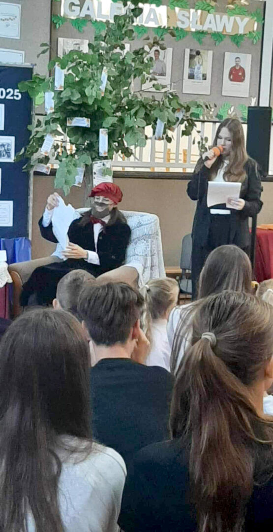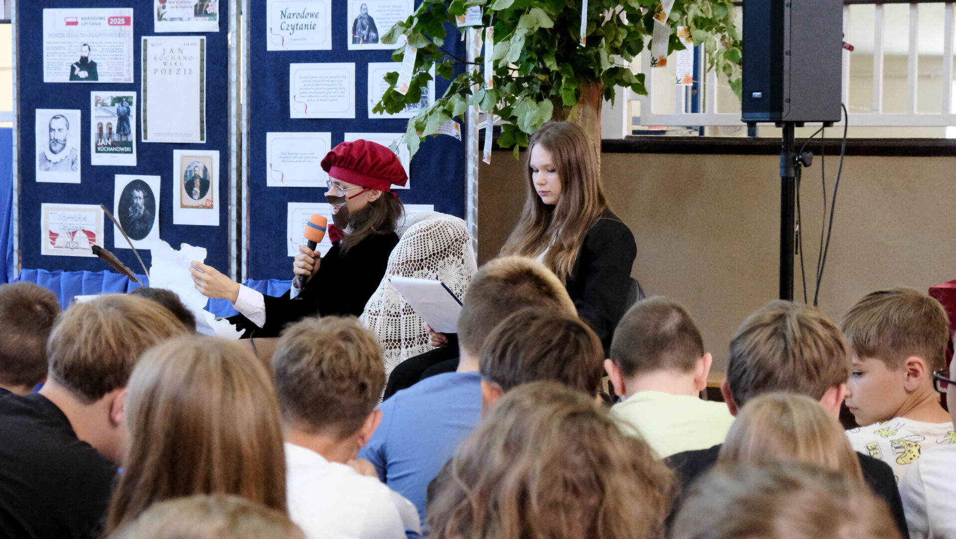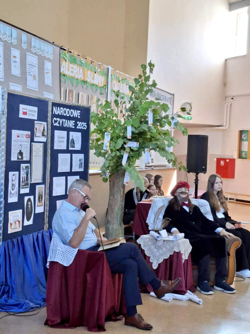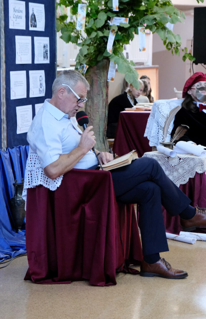 Podsumowaniem Narodowego Czytania 2025 było spotkanie w cieniu lipy. Podczas spotkania Pan Dyrektor odczytał pieśń ,,Czego chcesz od nas, Panie…”, a ,,Tren VIII” zaprezentował uczeń, który odegrał rolę poety z Czarnolasu. Na koniec wszyscy zebrani odczytali fraszkę ,,Na zdrowie”. A wszystko to przy dźwiękach renesansowej muzyki.