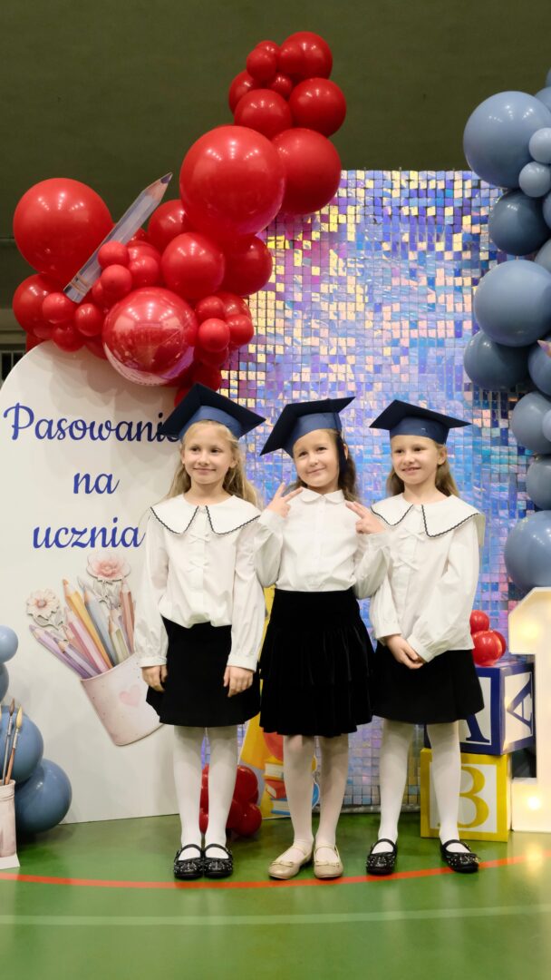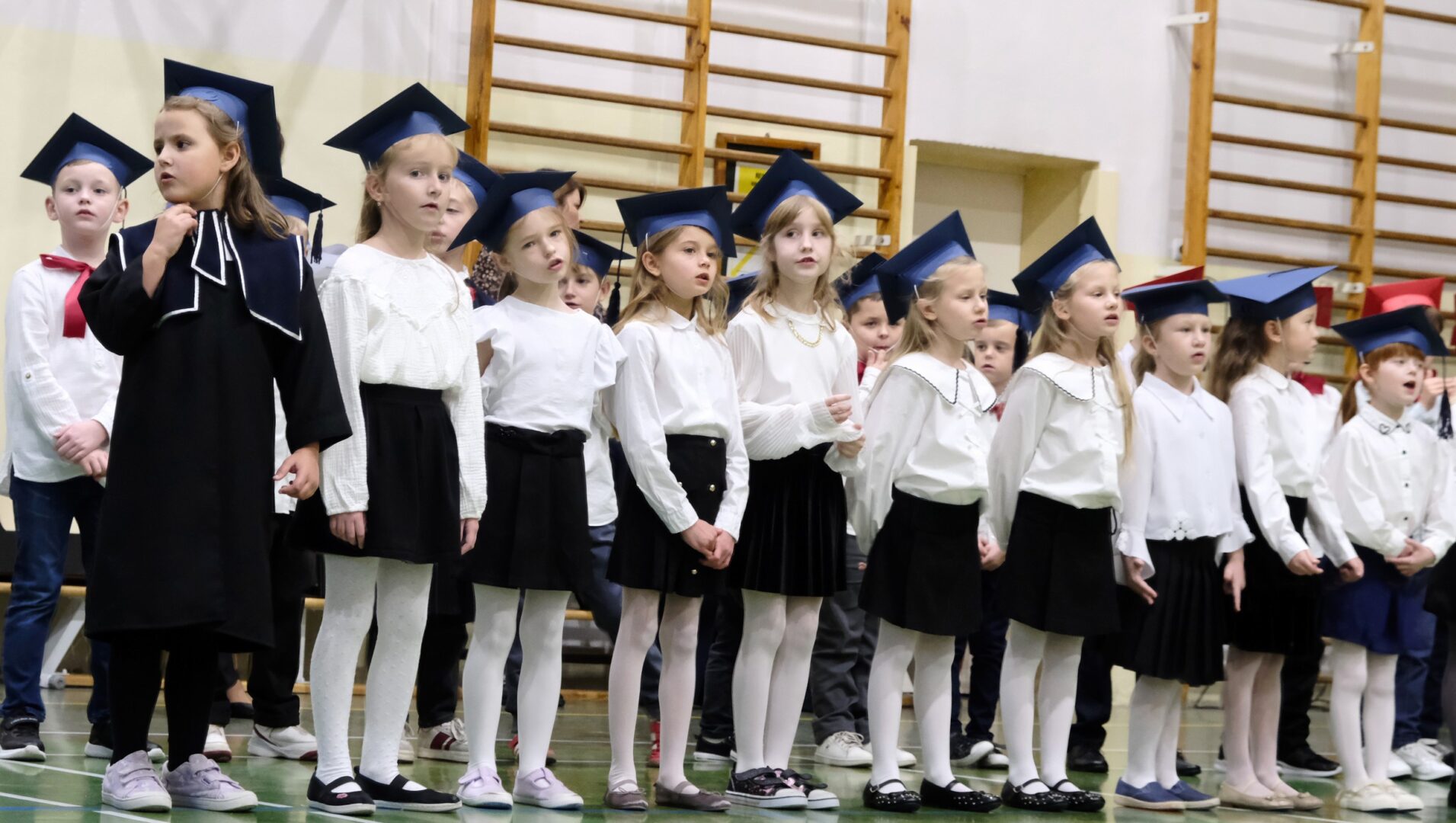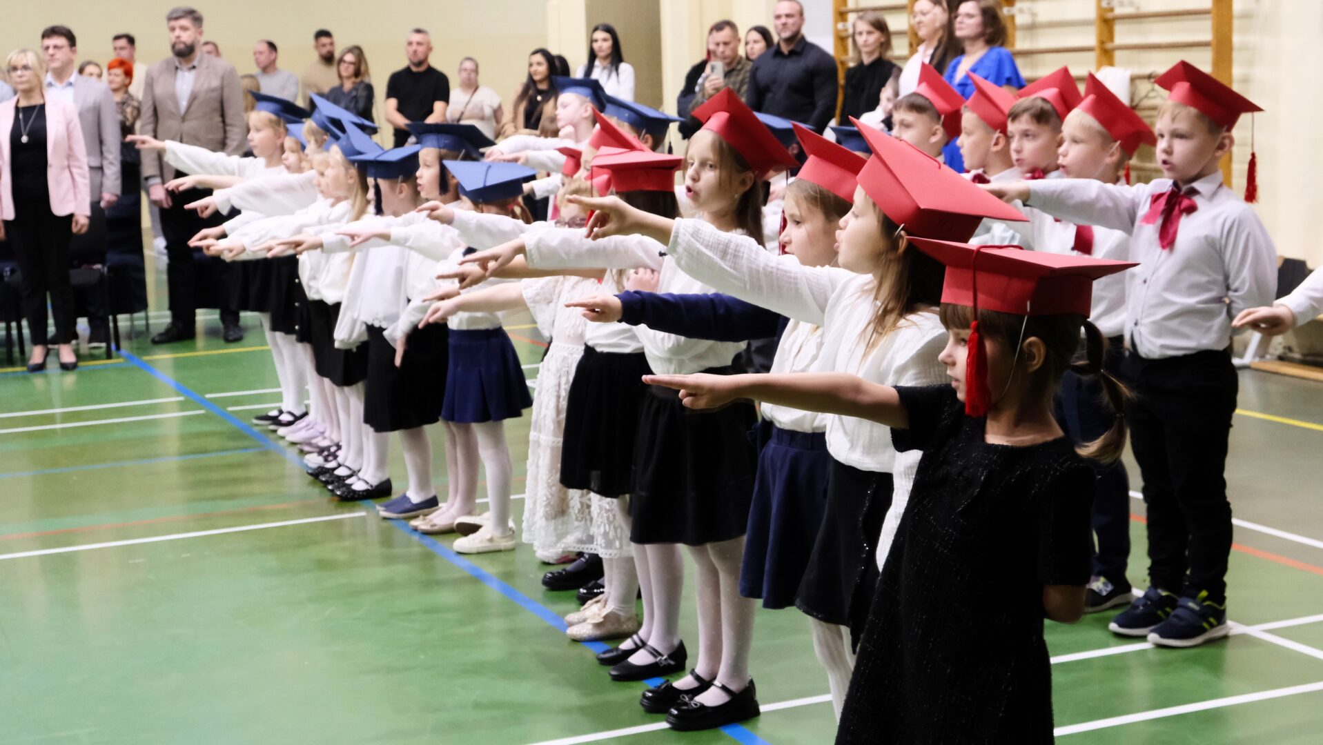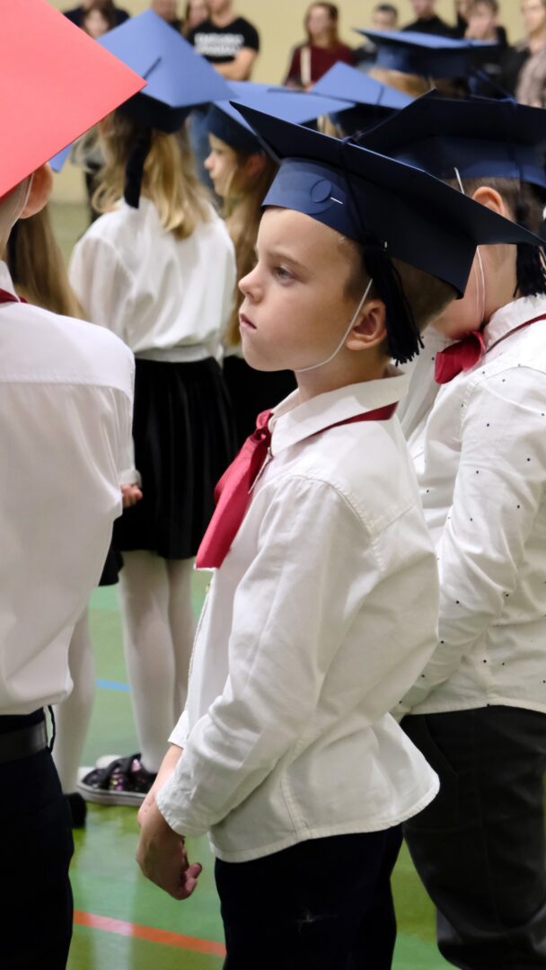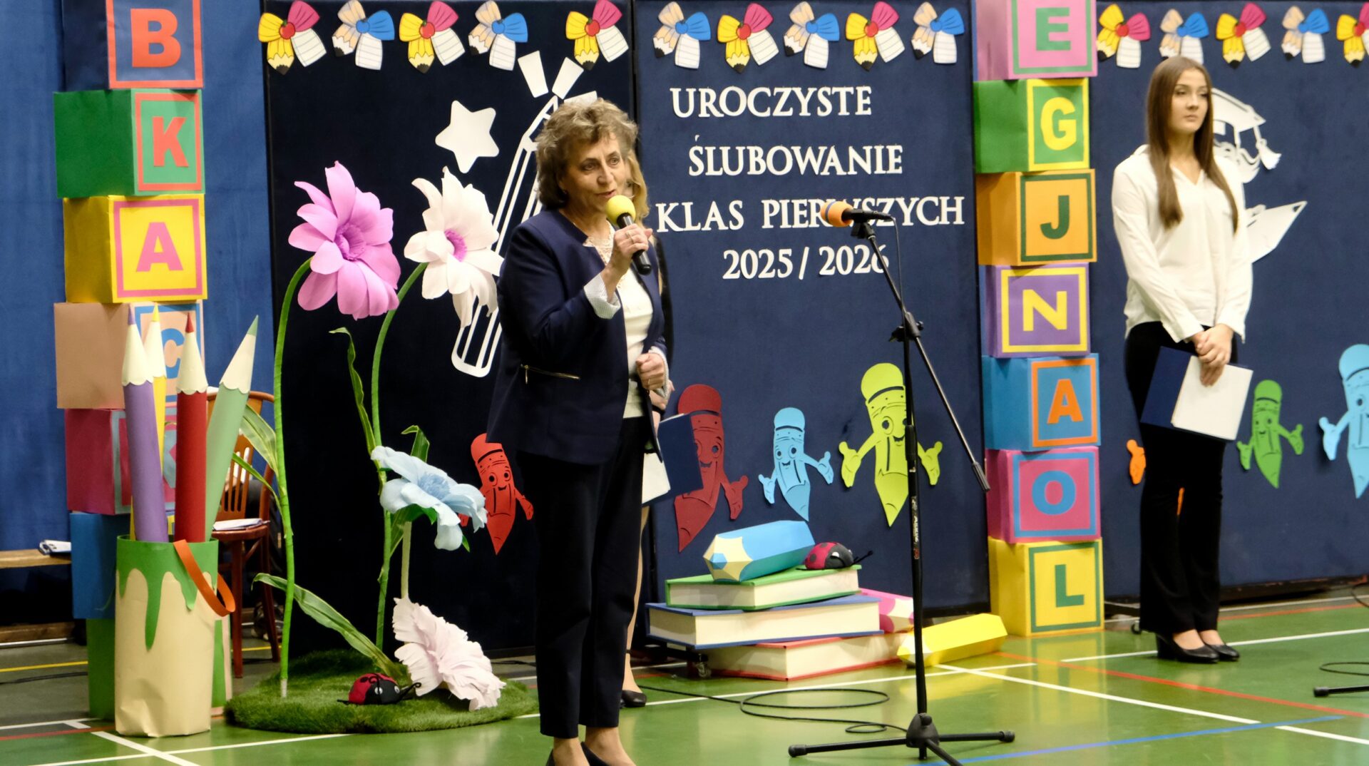 Słowami przysięgi, 29 października 2025r. wszyscy uczniowie klas pierwszych naszej szkoły złożyli uroczyste ślubowanie. Pomimo tremy jaka występuje przy podniosłych uroczystościach, wszystko wypadło znakomicie. Dzieci świetnie prezentowały się w strojach galowych oraz kolorowych, uczniowskich biretach. Nie sposób było oderwać od nich oczu.