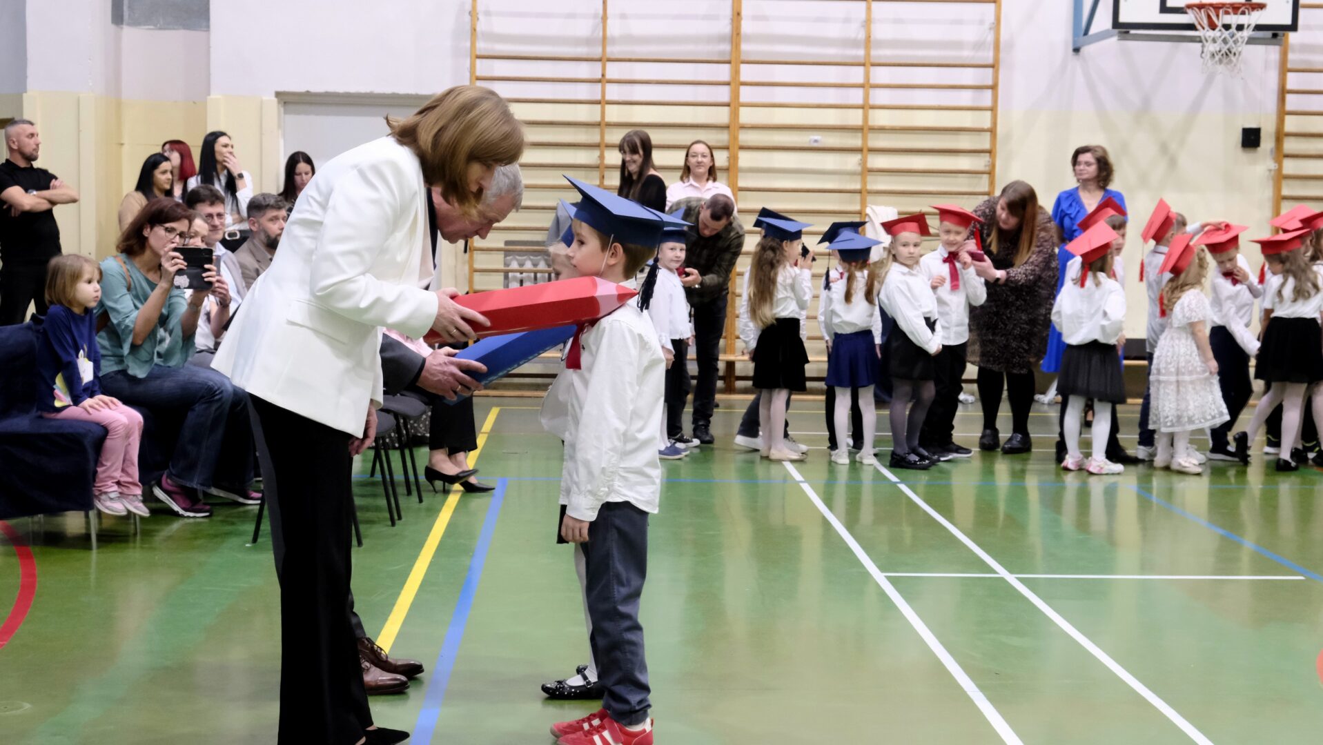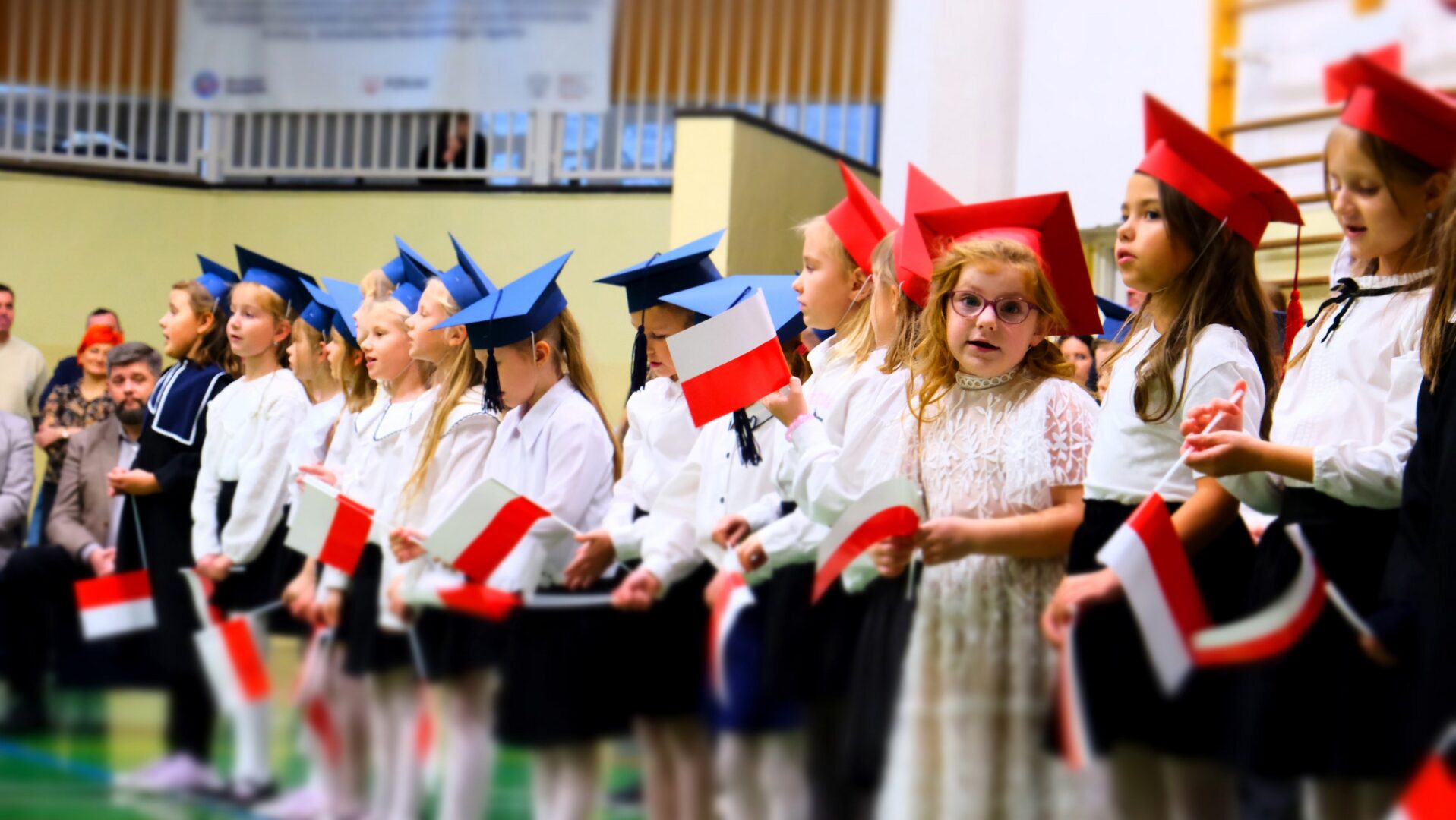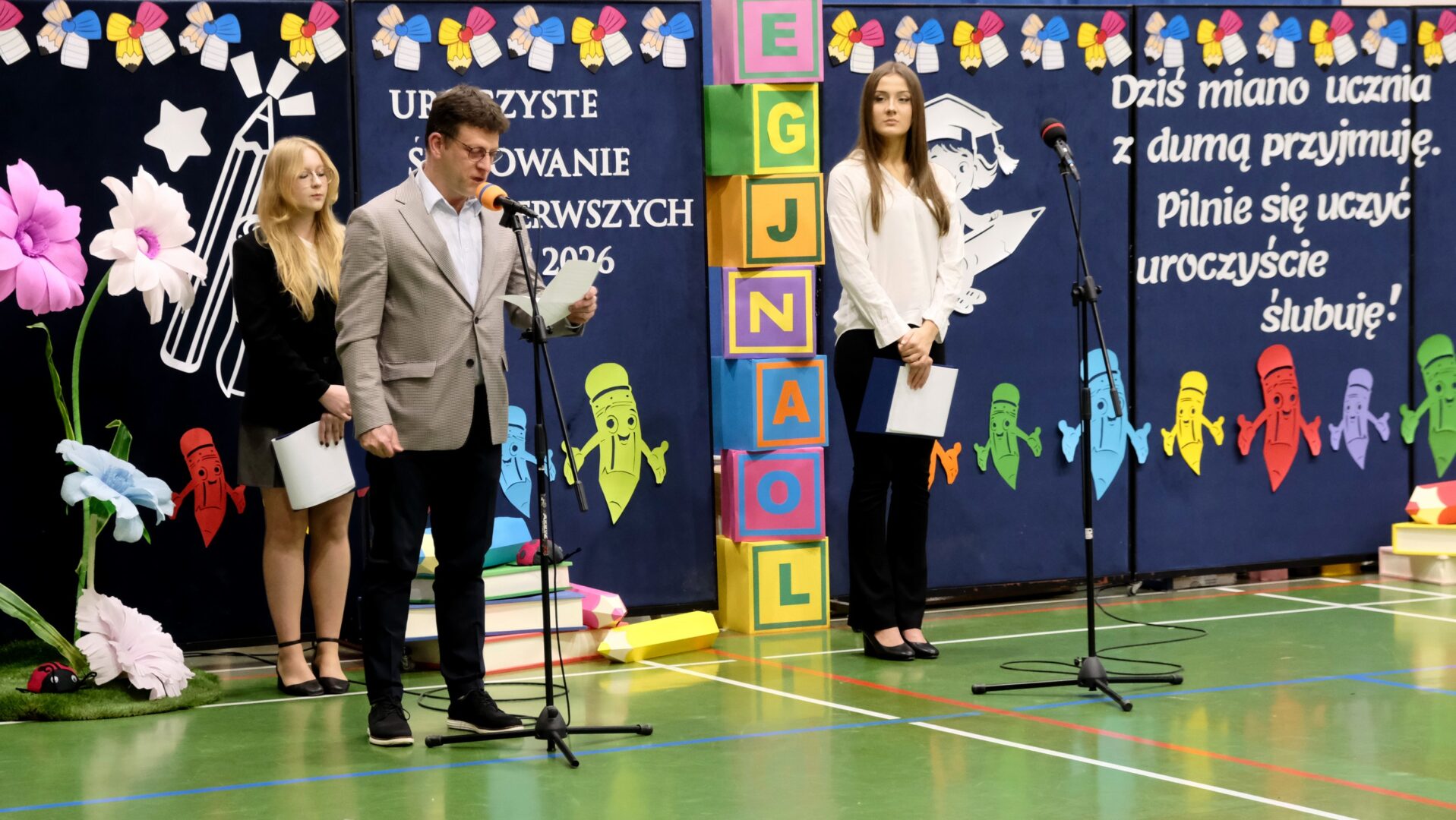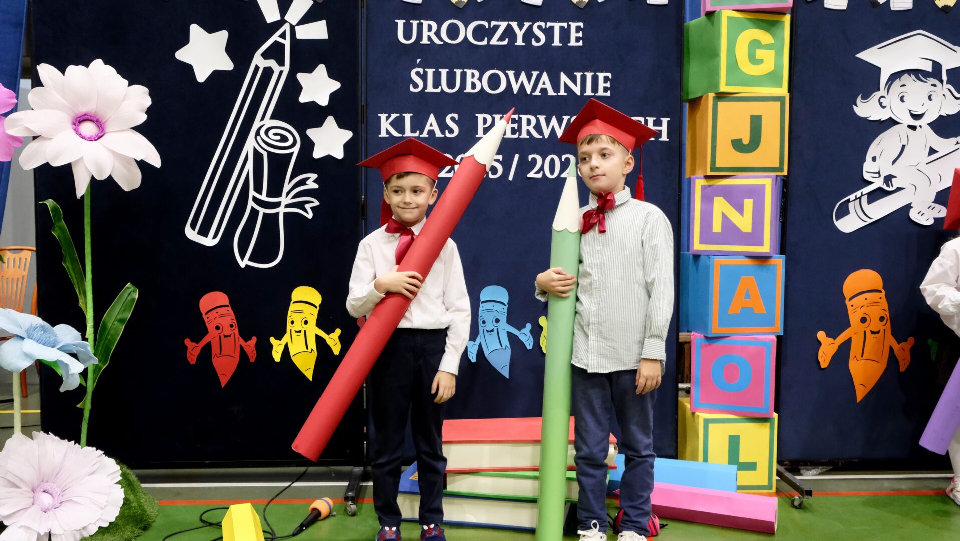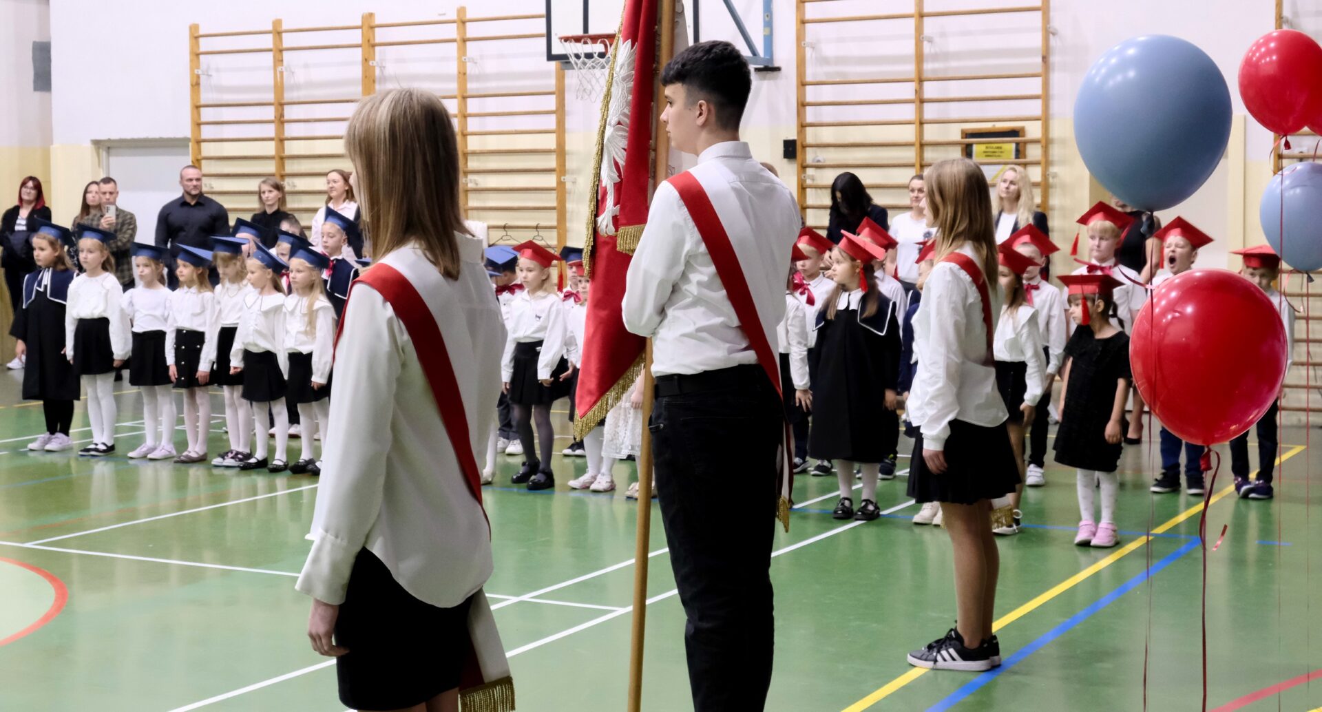 Słowami przysięgi, 29 października 2025r. wszyscy uczniowie klas pierwszych naszej szkoły złożyli uroczyste ślubowanie. Pomimo tremy jaka występuje przy podniosłych uroczystościach, wszystko wypadło znakomicie. Dzieci świetnie prezentowały się w strojach galowych oraz kolorowych, uczniowskich biretach. Nie sposób było oderwać od nich oczu.