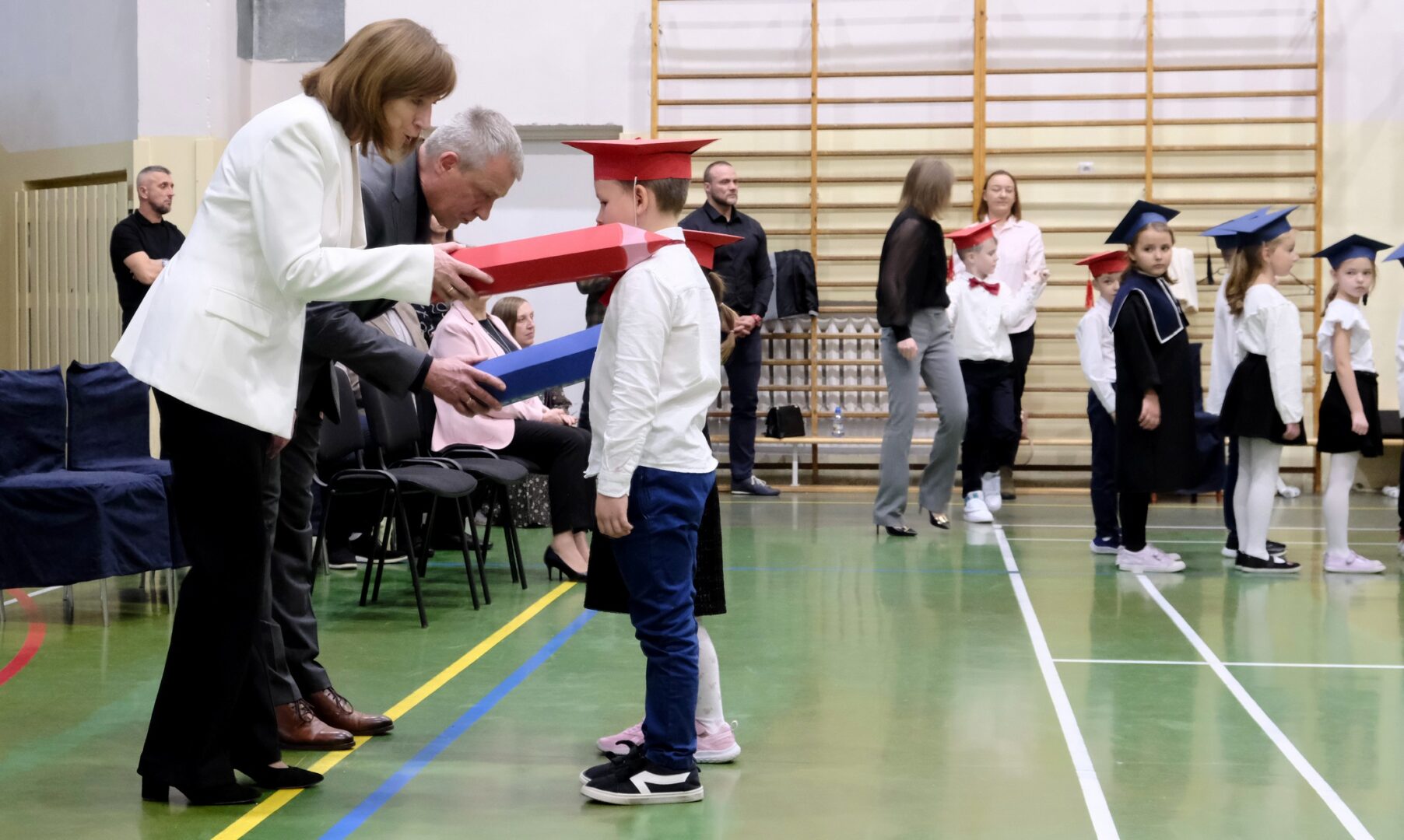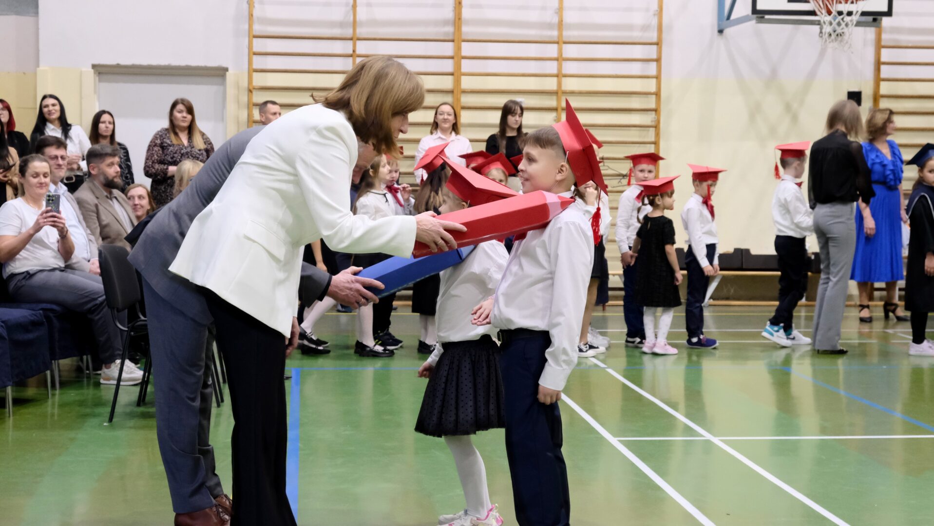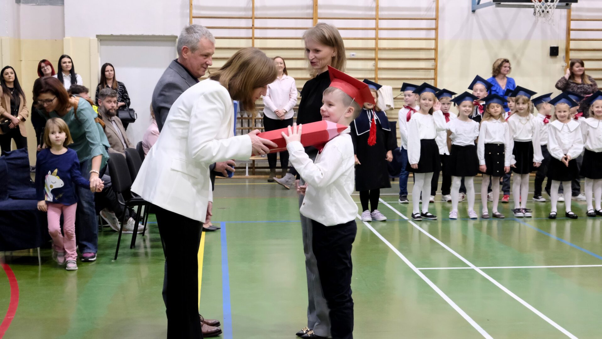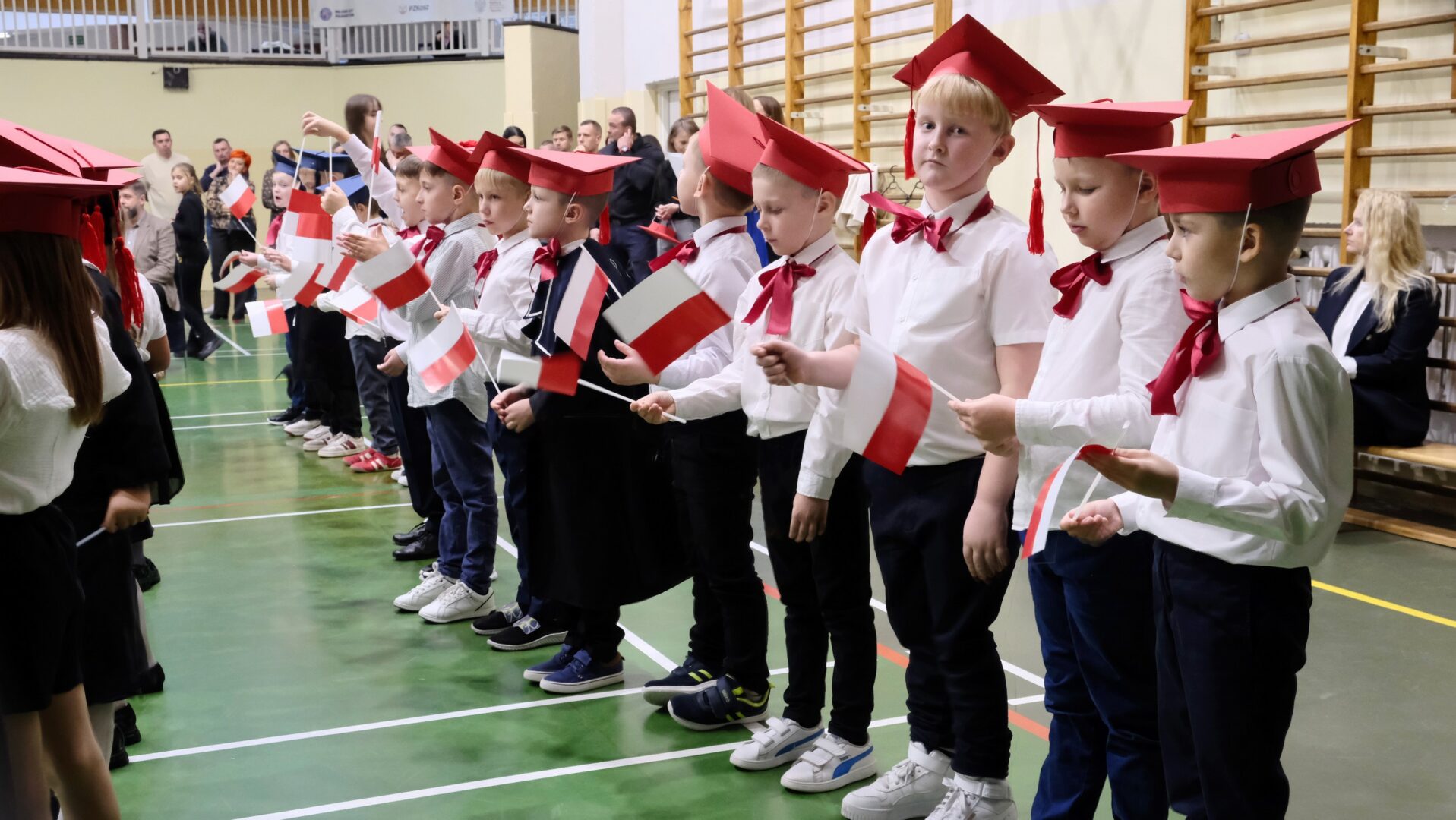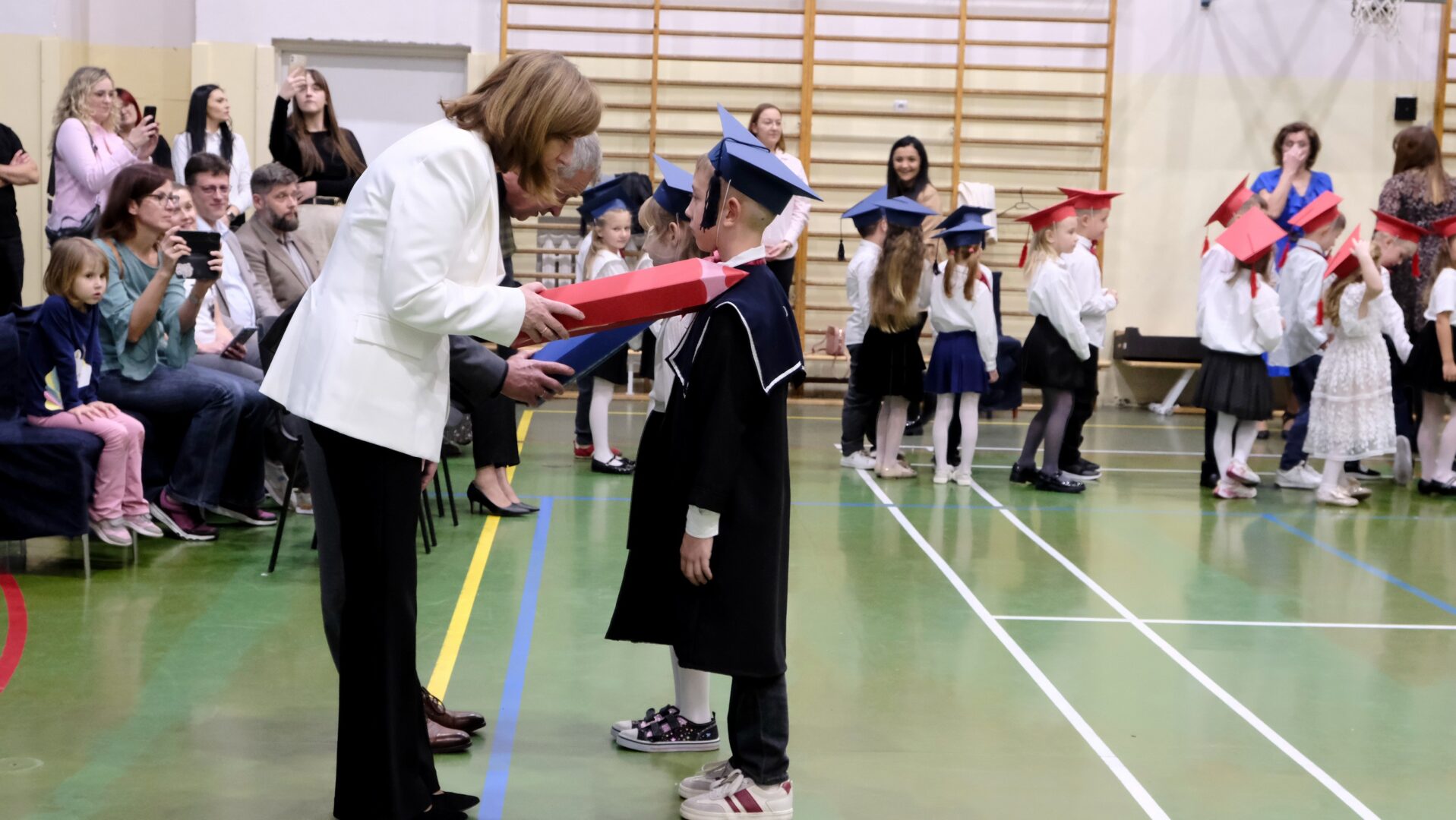 Słowami przysięgi, 29 października 2025r. wszyscy uczniowie klas pierwszych naszej szkoły złożyli uroczyste ślubowanie. Pomimo tremy jaka występuje przy podniosłych uroczystościach, wszystko wypadło znakomicie. Dzieci świetnie prezentowały się w strojach galowych oraz kolorowych, uczniowskich biretach. Nie sposób było oderwać od nich oczu.