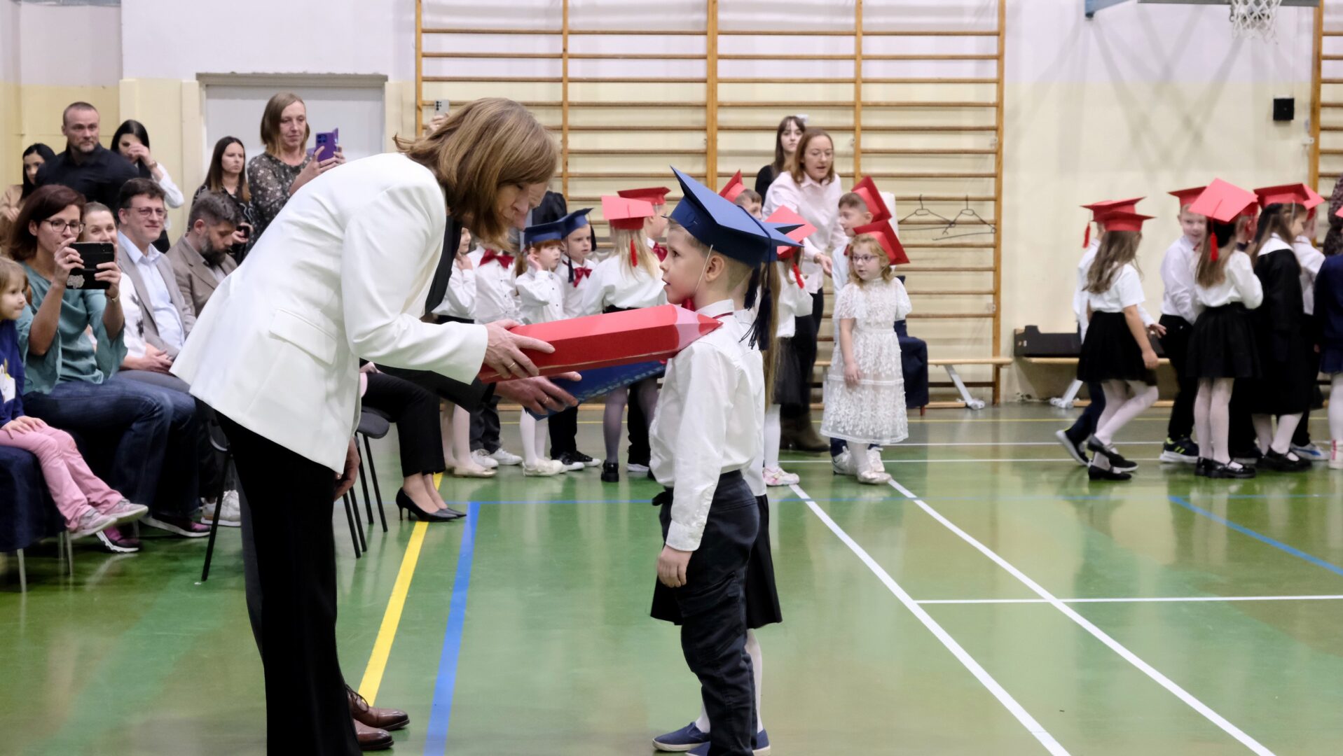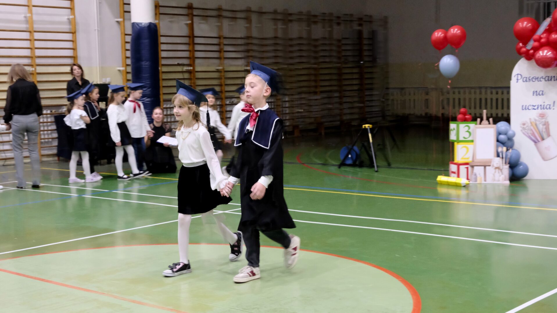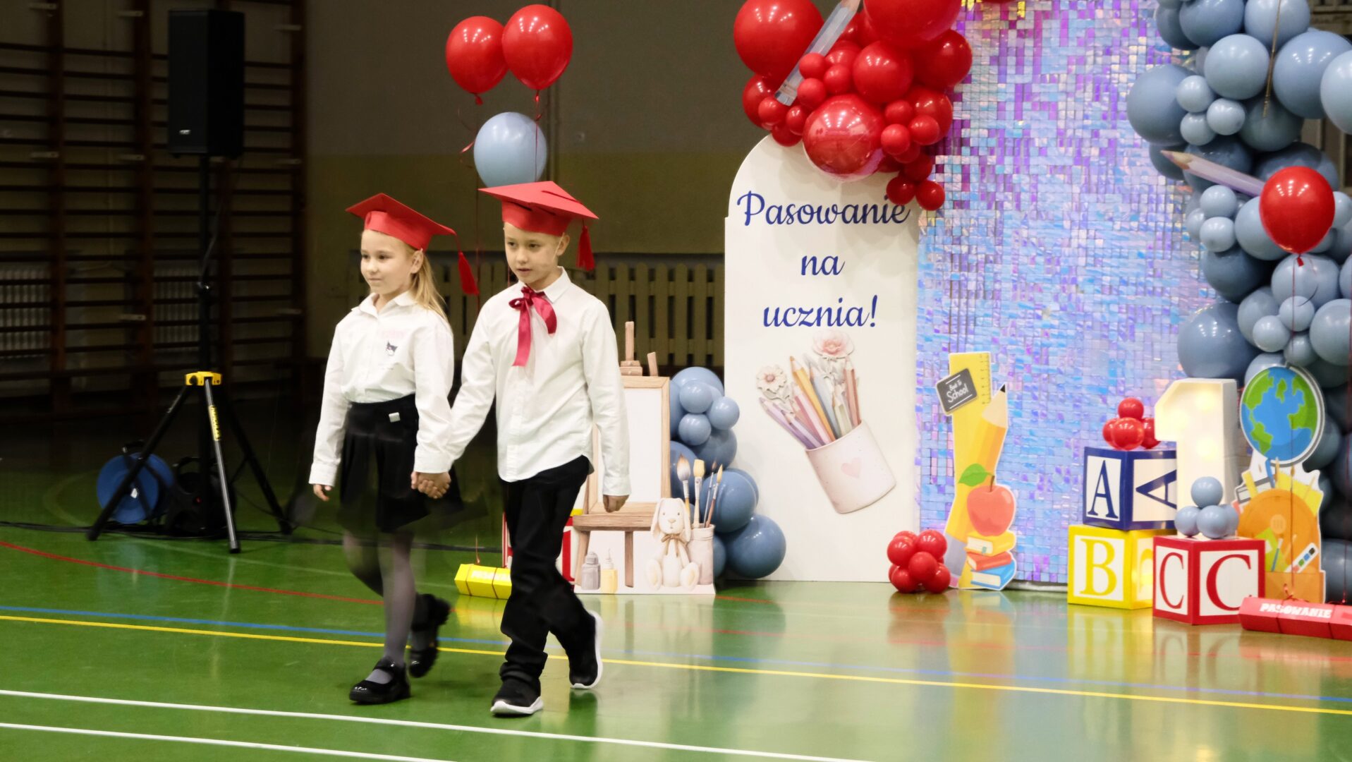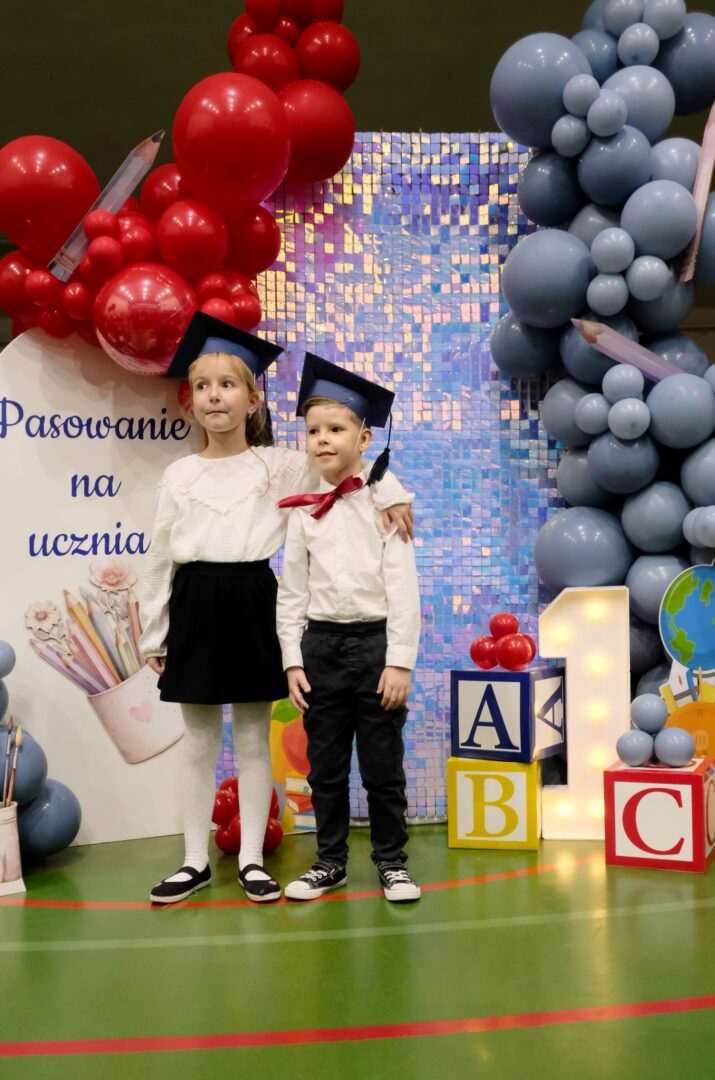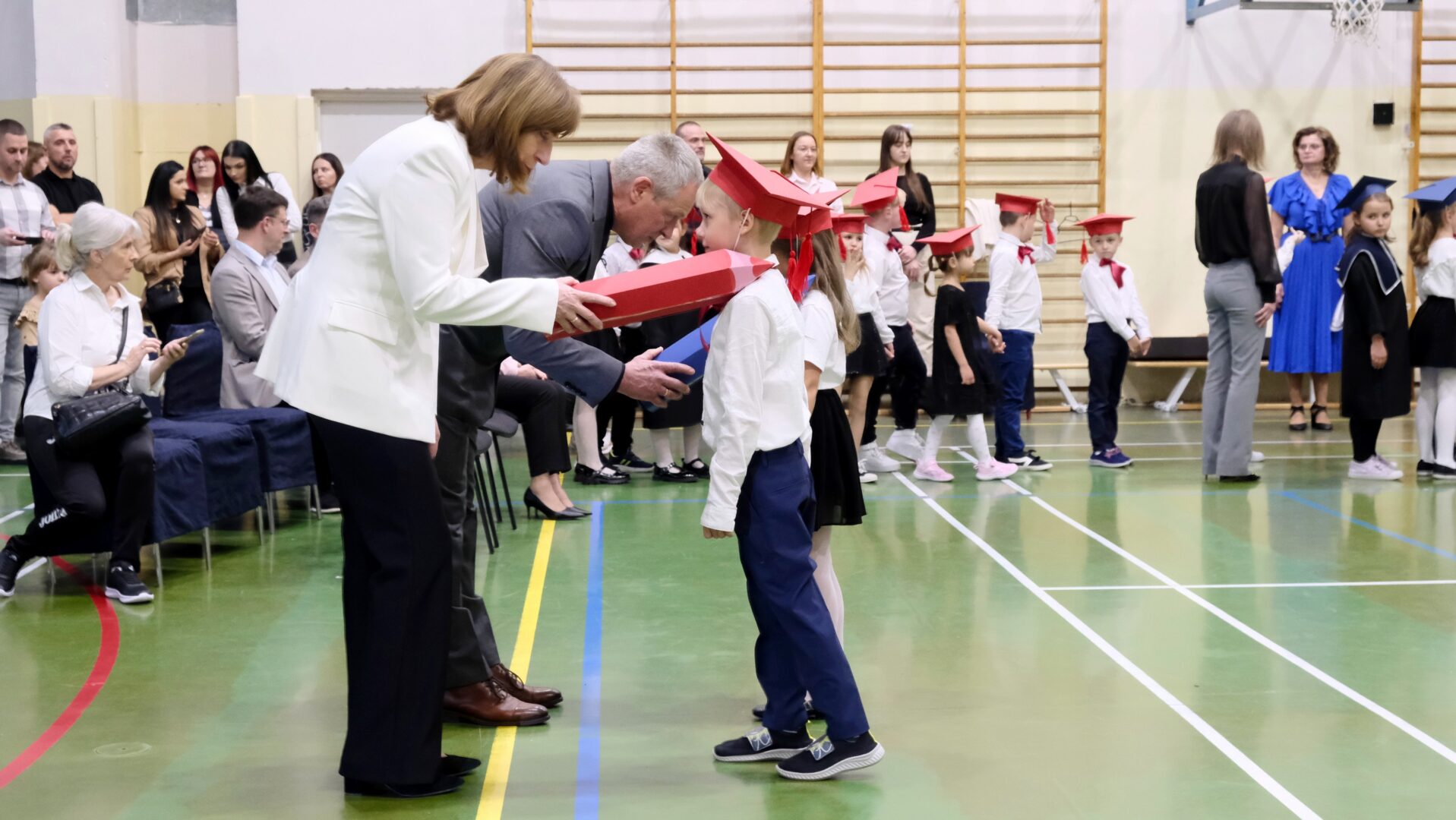 Słowami przysięgi, 29 października 2025r. wszyscy uczniowie klas pierwszych naszej szkoły złożyli uroczyste ślubowanie. Pomimo tremy jaka występuje przy podniosłych uroczystościach, wszystko wypadło znakomicie. Dzieci świetnie prezentowały się w strojach galowych oraz kolorowych, uczniowskich biretach. Nie sposób było oderwać od nich oczu.