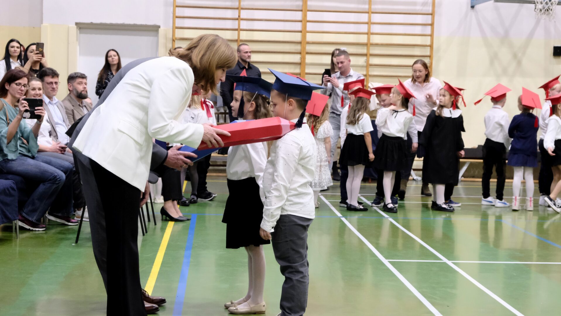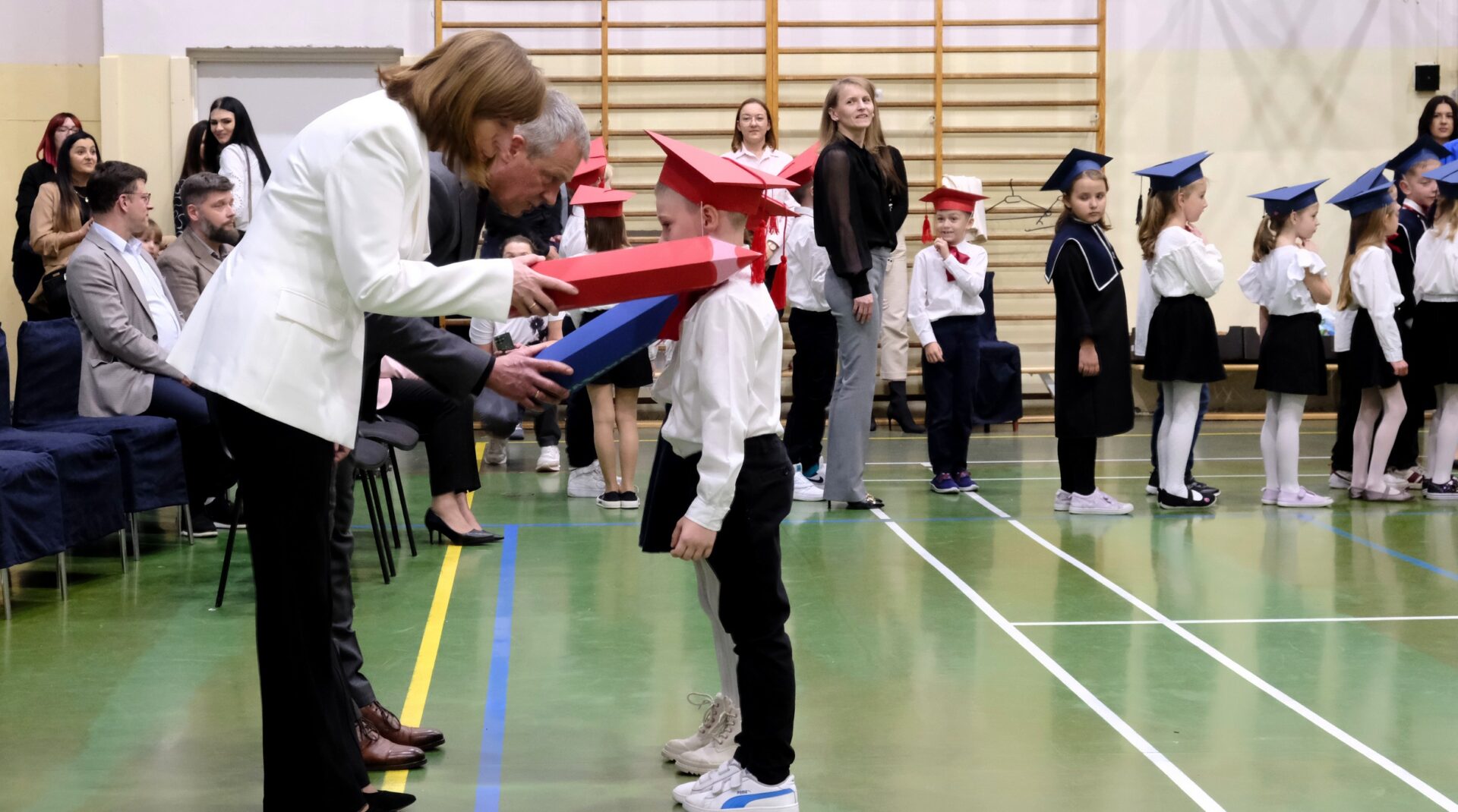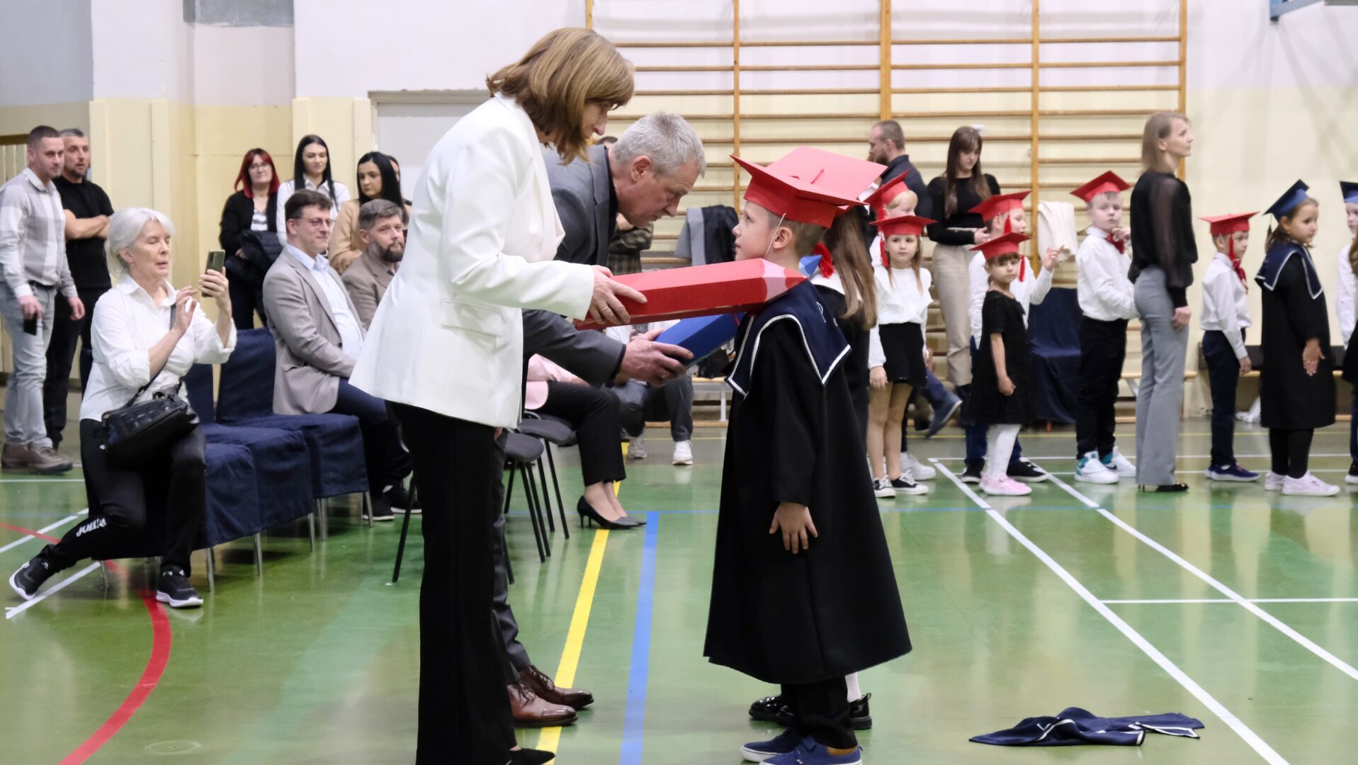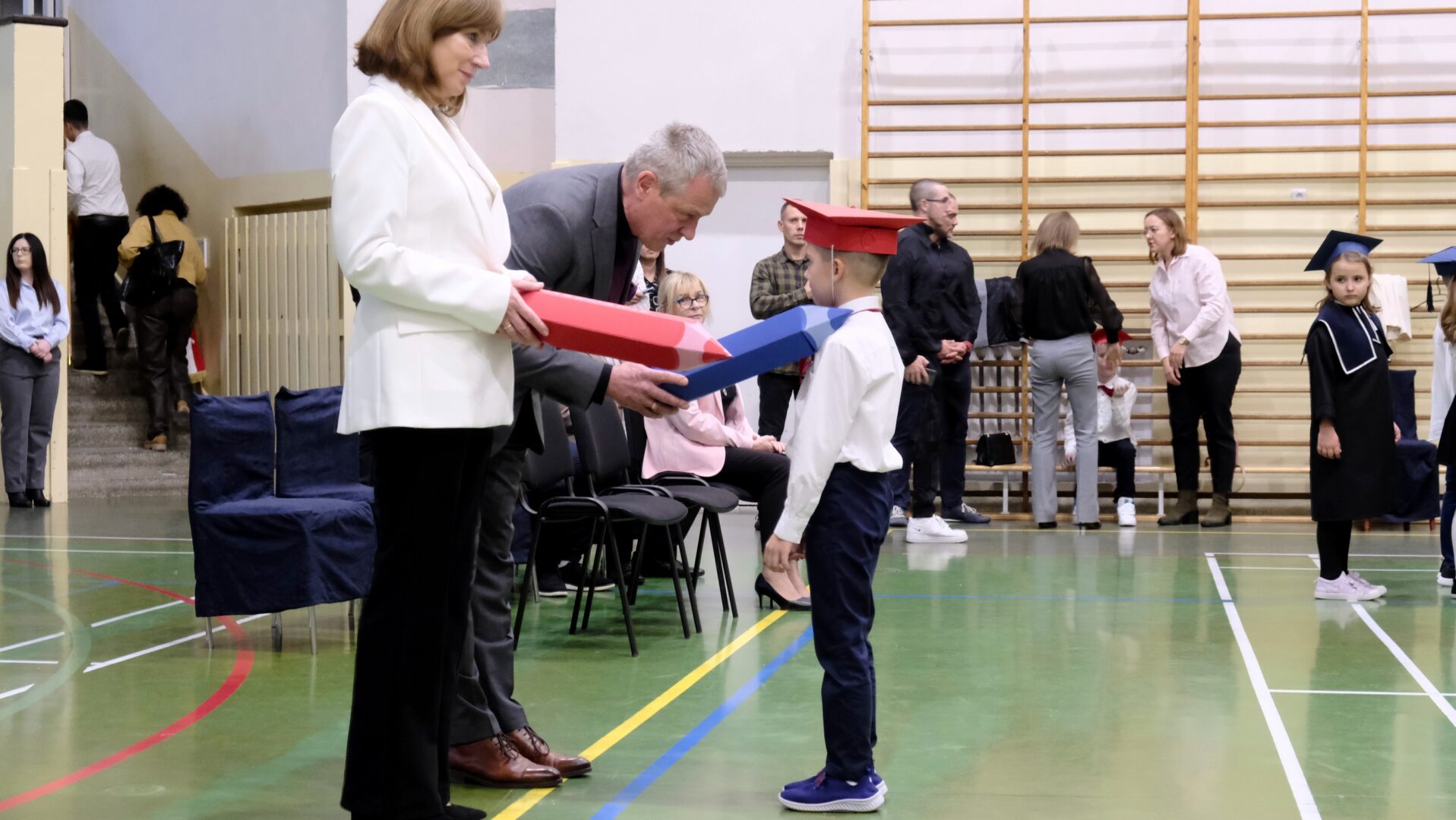 Słowami przysięgi, 29 października 2025r. wszyscy uczniowie klas pierwszych naszej szkoły złożyli uroczyste ślubowanie. Pomimo tremy jaka występuje przy podniosłych uroczystościach, wszystko wypadło znakomicie. Dzieci świetnie prezentowały się w strojach galowych oraz kolorowych, uczniowskich biretach. Nie sposób było oderwać od nich oczu.