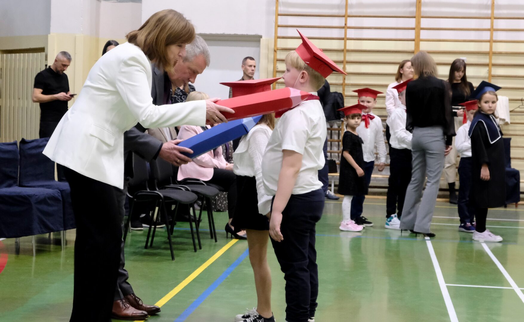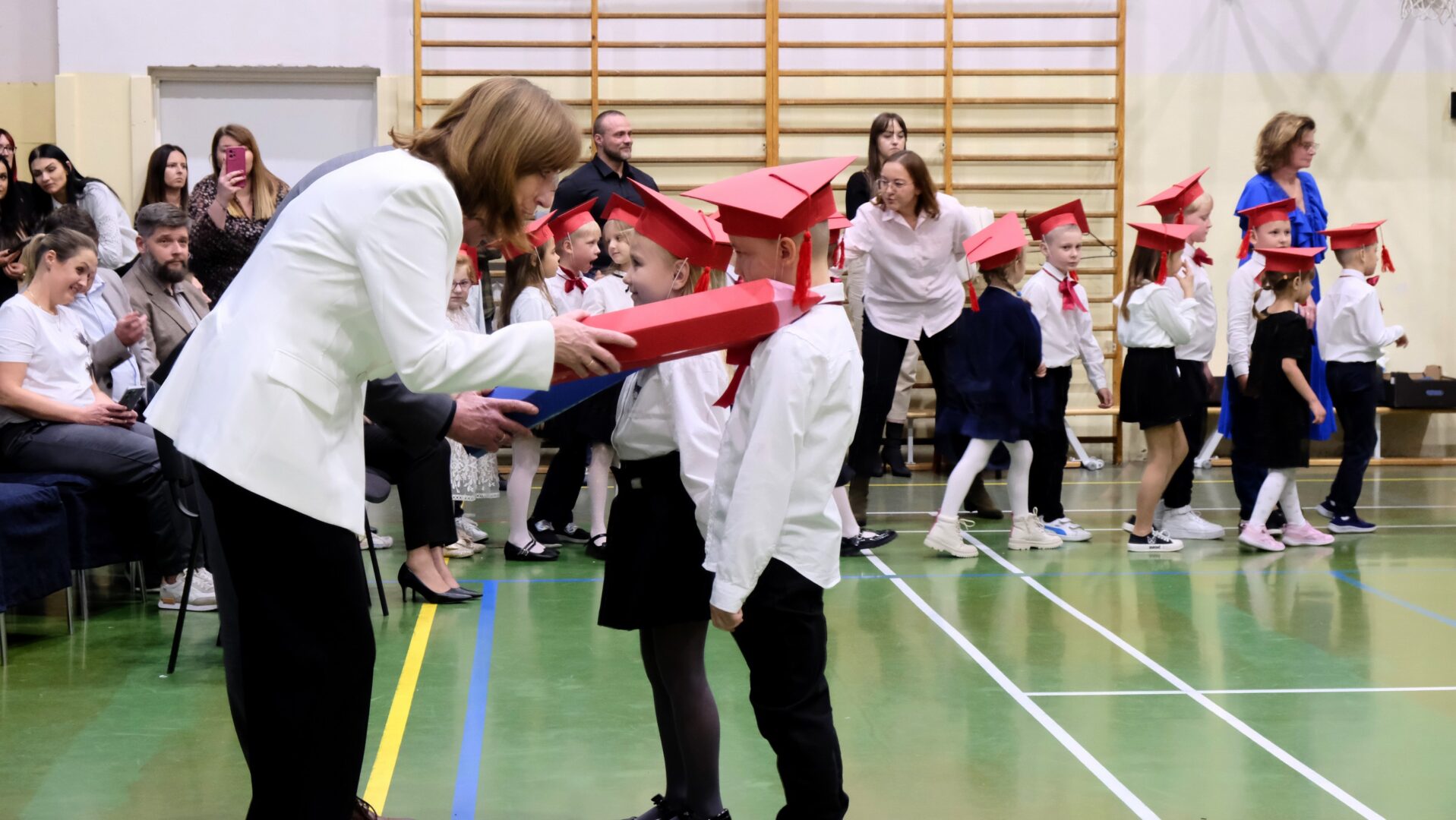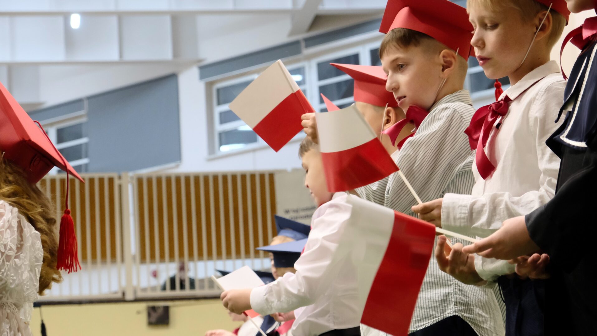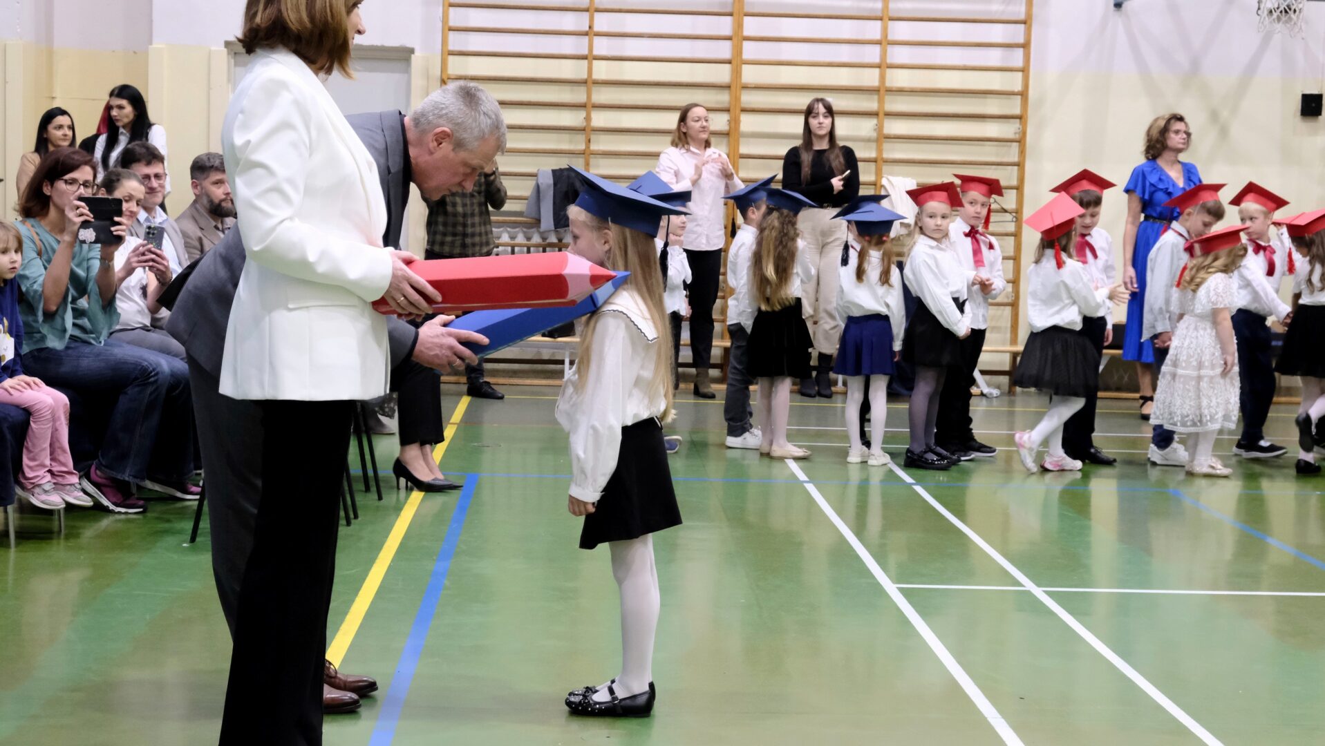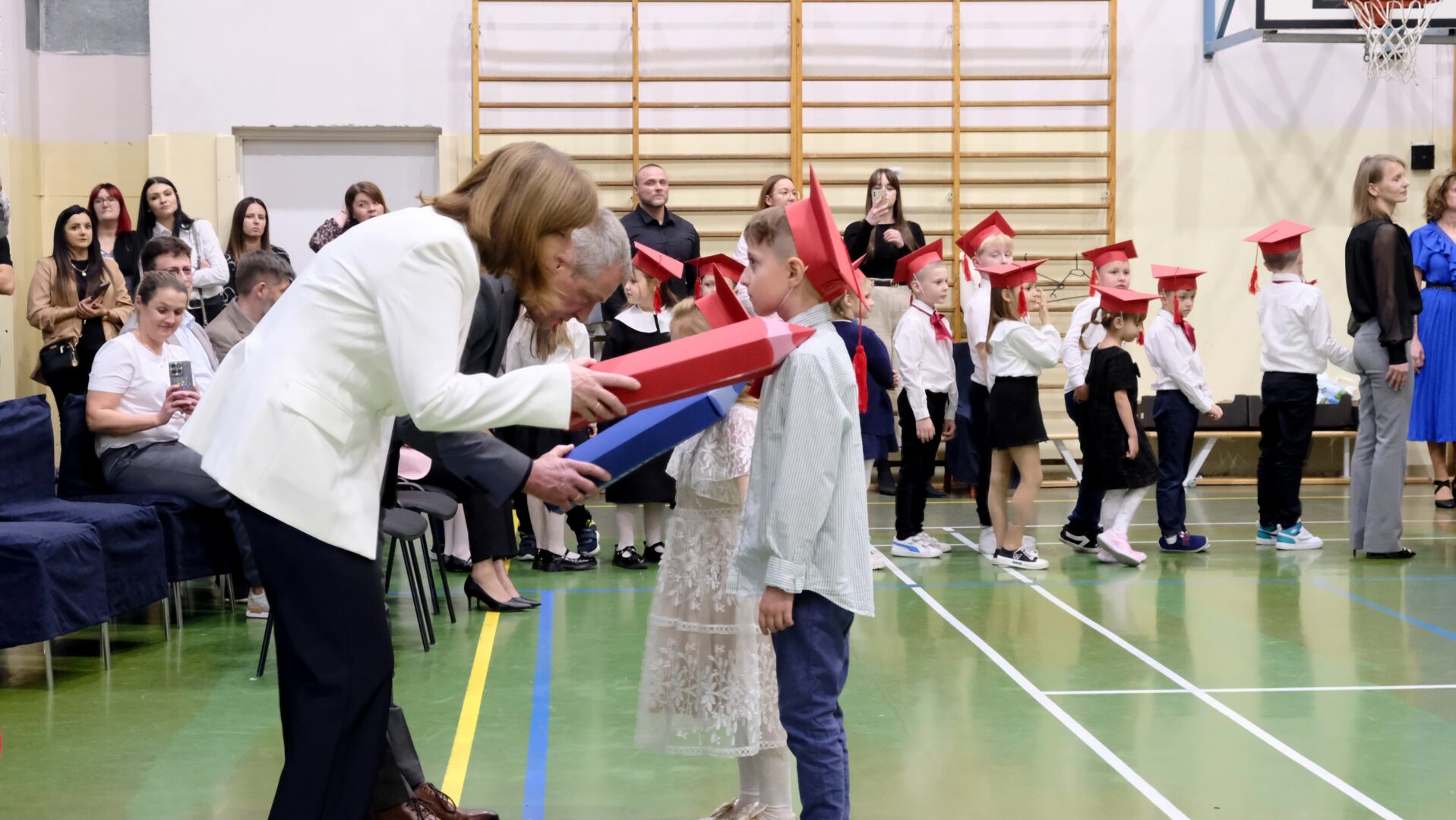 Słowami przysięgi, 29 października 2025r. wszyscy uczniowie klas pierwszych naszej szkoły złożyli uroczyste ślubowanie. Pomimo tremy jaka występuje przy podniosłych uroczystościach, wszystko wypadło znakomicie. Dzieci świetnie prezentowały się w strojach galowych oraz kolorowych, uczniowskich biretach. Nie sposób było oderwać od nich oczu.